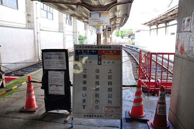 さて、こちらは南海電鉄住吉大社駅に隣接する、阪堺電気軌道の住吉公園駅。最近まで電車がひっきりなしに発着したのですが、昨年3月改正で朝4本だけの発着に・・・。 正直、これもいつまで残ることやら。それにしても、ここまでの大減便も凄い。
