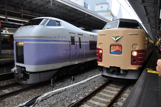 またまた新宿へ戻り、E351系特急「スーパーあずさ」と189系快速「ホリデー快速富士山」の並びをゲット。