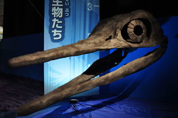 ショニサウルスという魚竜の頭骨。何と、全長21mにも達するとか。