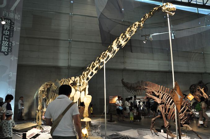 恐竜と言えば、馬藤所員。そして夏と言えば、なぜか恐竜博。 首都圏の場合、今年は千葉市の幕張メッセと横浜のパシフィコ横浜で開催されており、恐竜博がバッティングしているのですが、まずは幕張メッセで開催されている「メガ恐竜展2015 −巨大化の謎にせまる」を見ることにしました。 ・・・ん?まずは? さて、最初に出迎えてくれたのがプラキオサウルスの生体復元。