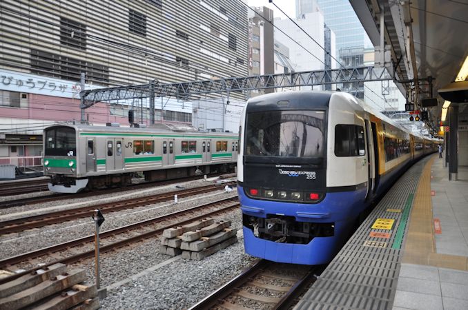 さて、新宿駅へ戻ると255系による特急「新宿わかしお」号が停車中。