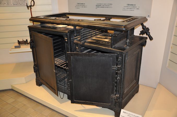 明治後期のイギリス製(フレチャラッセル社製)ガスレンジ。