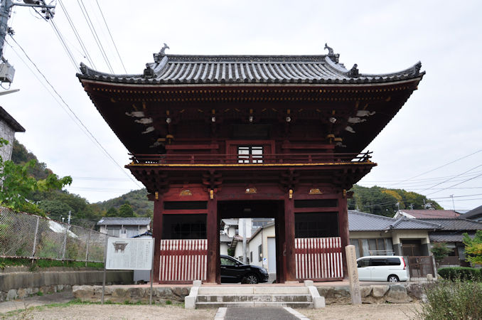 仁王門と本堂の間は、昭和30年代に赤穂線と国道2号線(バイパス)の開通に伴い完全に分断。仁王門周辺は宅地化され、本堂に行くには跨線橋と歩道橋を渡る必要さえあるため奇妙な風景になっています。