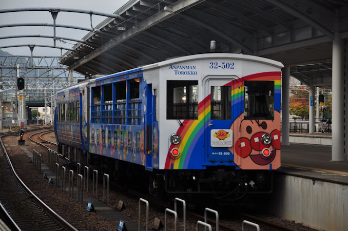 高松駅では新塗装になった、アンパンマントロッコに出会います。