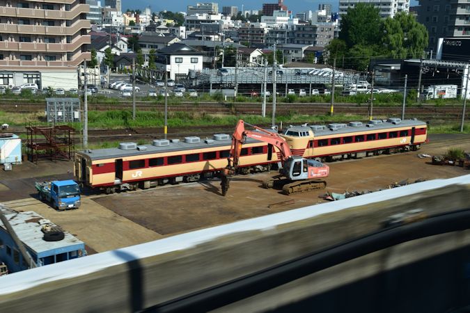 この日は一路、福島県の郡山駅へ。駅到着直前には、引退した485系A1・A2編成のクハ481形が絶賛解体中でした。鉄道博物館で保存しないかと思ったのですが、同じような顔つきはクハ183形が2両もいるからでしょうか、叶わぬ結果となりました。 トレインマークの回転などで良い客寄せになると思うのですが、485系=ボンネットなんでしょうかね。