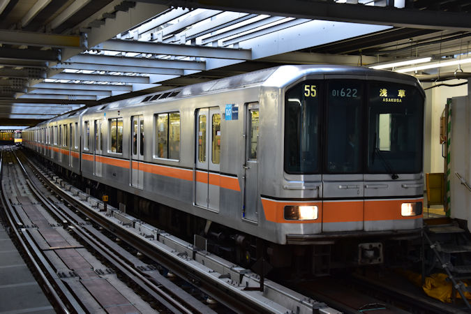 さて、浅草から東京メトロ銀座線に乗車すると01系「くまモン電車」でした。
