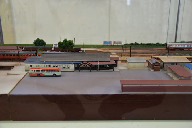 様々な鉄道部品の他、昭和50年代後半をイメージした丹後山田駅のジオラマも。1985(昭和60)年に廃止されるまで、加悦鉄道が乗り入れていましたので、広い構内を持っています。