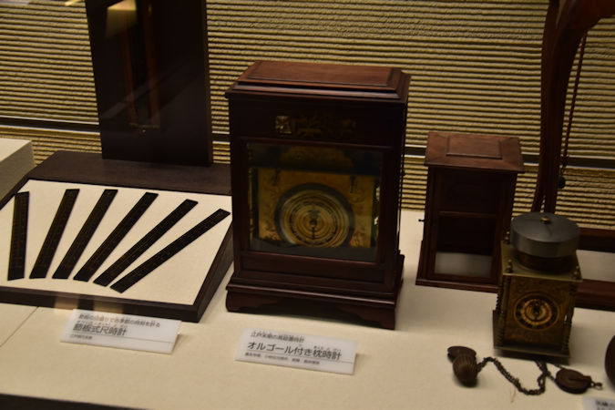 万年自鳴鐘(万年時計)。江戸時代の発明家、田中久重によって製作された機械式の置時計で、国の重要文化財に指定。外装に京七宝、蒔絵、螺鈿など伝統工芸の粋を凝らしており、見事なものです。