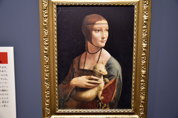 また、複製品ですが絵画も展示されていました。白貂(しろてん)を抱く貴婦人。貂(てん)のことをギリシア語でガレーと云うそうなのですが、この貴婦人の姓がガッレラーニであることを示しているとか。