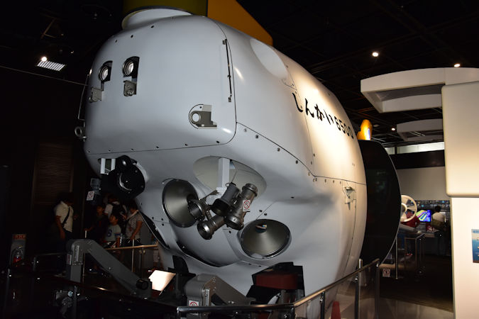 有人潜水調査船「しんかい6500」の実物大分解展示。