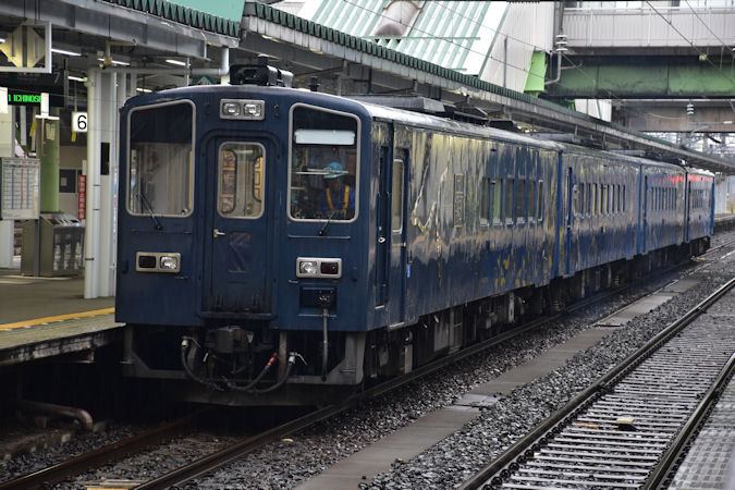一方、「客車」として使用される青色のグラデーションが特徴的なキハ141系も入線。