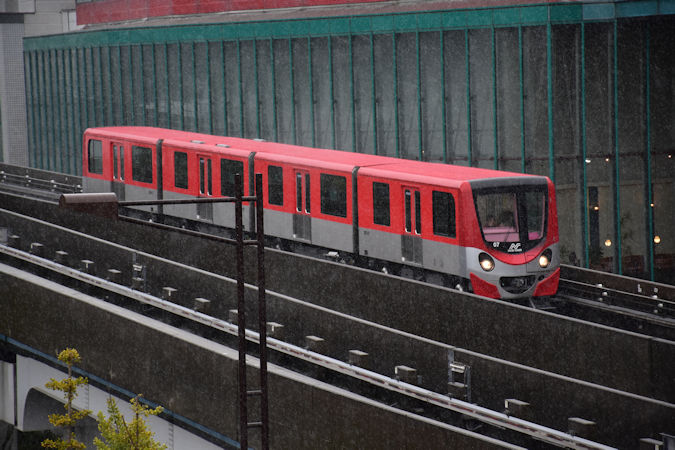 さらに、100A系に乗車し、トレードセンター前駅で南港ポートタウン線を撮影します。