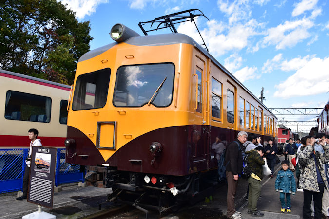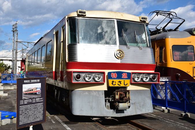 5000系クハ5503は、ヘッドマークを付けた状態で展示。