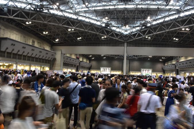 午前中に到着したら、もはや阿鼻叫喚状態の長蛇の列でいったん撤退。帰ろうかと思いつつ、もしかしてと思い午後に出直してみたら会場にはスムーズに入れました。しかし、人のあまりの多さで灼熱地獄・・・。