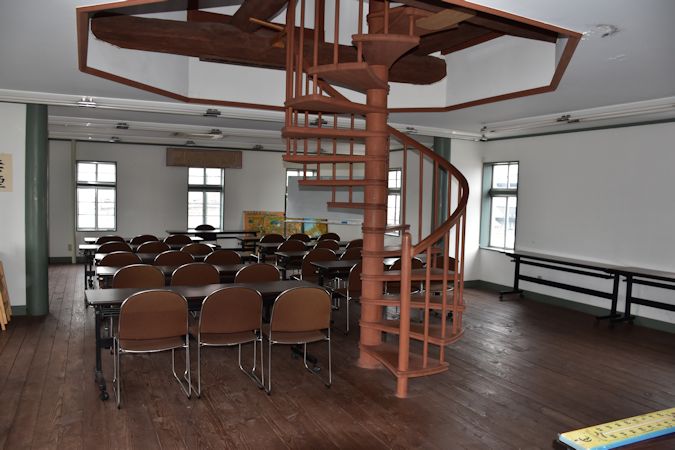 1874(明治7)年築で、1936(昭和11)年に現在地へ移築。木造3階建、八角塔屋付の擬洋風建築。現在は会議室などで使用されています。