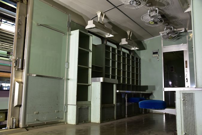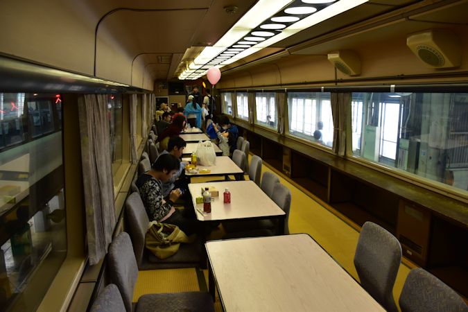ここから徒歩で、長野総合車両センターの一般公開へ初めて参戦。廃車回送された485系「リゾートエクスプレスゆう」の車内が公開されていたほか、E353系との並びも。