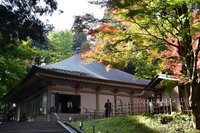 続いて坂上田村麻呂が毘沙門天を祀った岩窟「達谷西光寺」へ。戦国時代になると戦乱によって悉く灰燼に帰しますが、1615(慶長20)年に仙台藩主の伊達政宗が再建。しかし、1946(昭和21)年に隣家からの出火により毘沙門堂が焼失。現在見られるものは1961(昭和36)年に再建されたものです。