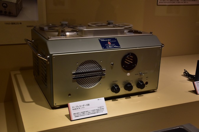 1950(昭和25)年に東京通信工業(※現・ソニー)が製造したテープレコーダーG型。未来技術遺産に指定されています。(※展示品はレプリカ)