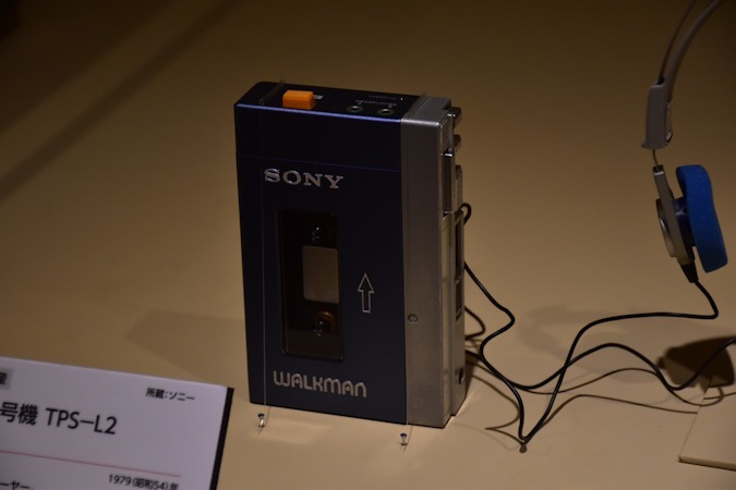 1979(昭和54)年にソニーが製造した「ウォークマン1号機 TPS-L2」。世界初の携帯型ステレオカセットプレーヤーです。未来技術遺産に指定。