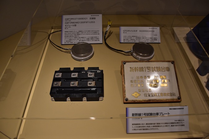 新幹線1号試験台車プレートなど。鉄道関連の展示はあっさりしていたのが、鉄道好きとしては残念。