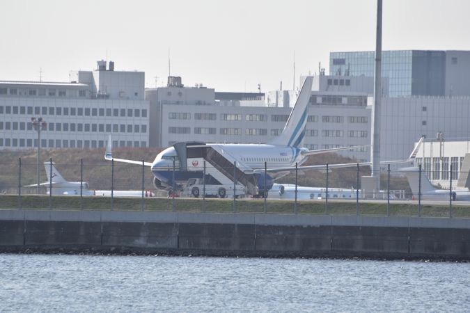 この日は羽田空港を飛び立つ飛行機を、空港の外から撮影してみようと考え、まずは京浜島緑道公園へ。見慣れない飛行機がいたので確認したところ、アメリカのカジノ運営会社ラスベガス サンズ所有のボーイング737-700でした。日本からお客さんを直接送迎するのでしょうか。