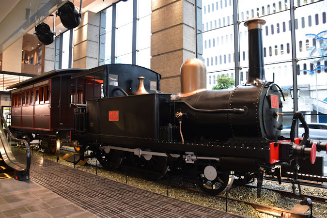 あわせて新南口直結の商業施設「CIAL桜木町ANNEX」と「JR東日本ホテルメッツ横浜桜木町」がオープンしたのですが、この場所は1872(明治5)年に日本で初めて鉄道が誕生した際に設置された、初代横浜駅があった場所であることから、駅ビルの外観が往時を模したものになっているほか、1階に旧横濱鉄道歴史展示(旧横ギャラリー)が併設。鉄道開業時の車両で青梅鉄道公園から移設された110形蒸気機関車と、新たに復元された中等客車、鉄道開業時にイギリスから輸入された双頭レール、初代横浜駅にジオラマなどが展示されているというので、早速チェックです。