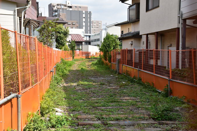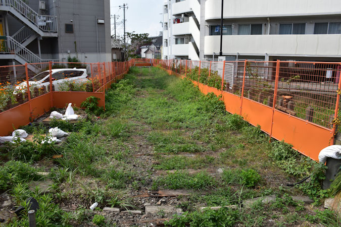 枕木は残っていましたが、線路も架線柱もありません・・・。
