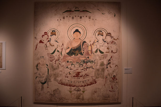 続いて横浜のそごう美術館で開催中の東京芸術大学 スーパークローン文化財展を鑑賞。法隆寺の焼損した金堂壁画や間近で鑑賞することができない釈迦三尊像と爆破されたバーミヤン東大仏天井壁画(上写真)、高句麗江西大墓や敦煌莫高窟など様々な文化財を、伝統的な模写の技術と最先端のデジタル技術で再現する…という内容で、本来であればとても見られないものを数多く鑑賞させてもらえました。