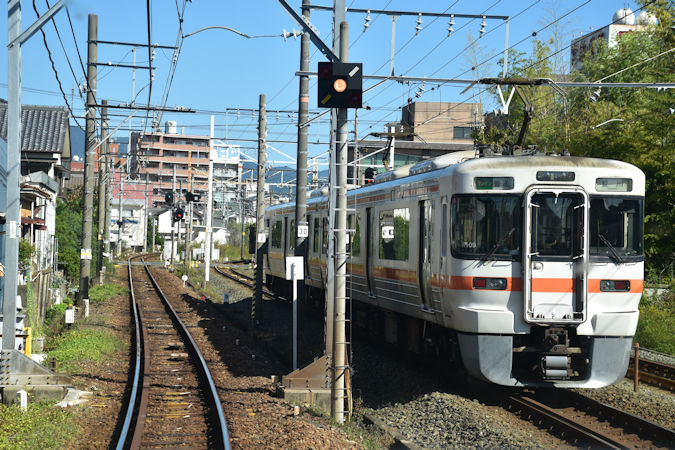 名古屋駅に到着し、ネオン所員と合流。栄生駅で名鉄を撮ることにします。隣を通過するのはJR東海道本線。