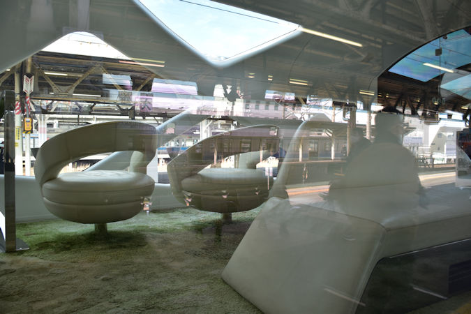 小田原方の10号車。四季島は他の観光列車と異なり窓が小さいのが気になりますが、乗っている分には問題ないのでしょうか?まあ、値段が高いので一生縁がないと思いますが…。