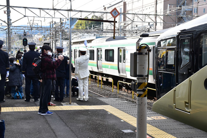 さて、四季島が小田原駅に到着し、編成写真を…と思ったら隣のホームにE231系が停車していたので撮影出来ず。ということで、停車風景を色々撮影してみることに。