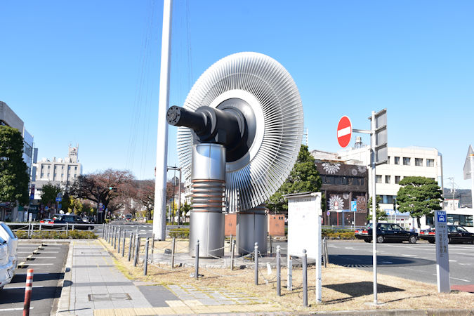 市の中心部は反対の中央口。駅前ロータリーには、日立製作所から寄贈された発電用蒸気タービンの一部がモニュメントとして設置されています。日立市は日立製作所の企業城下町・・・のようなイメージでしたが、その象徴的な存在であった日立製作所日立工場が三菱パワー日立工場に変わるなど、次第に影が薄くなりつつあるようです。