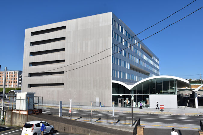 さて、駅から少々歩いて日立市役所へ。Mr.Kの希望でマンホールカードをゲット。市役所も日立駅と同じく、日立市出身の建築デザイナー妹島和世の設計によるもの。