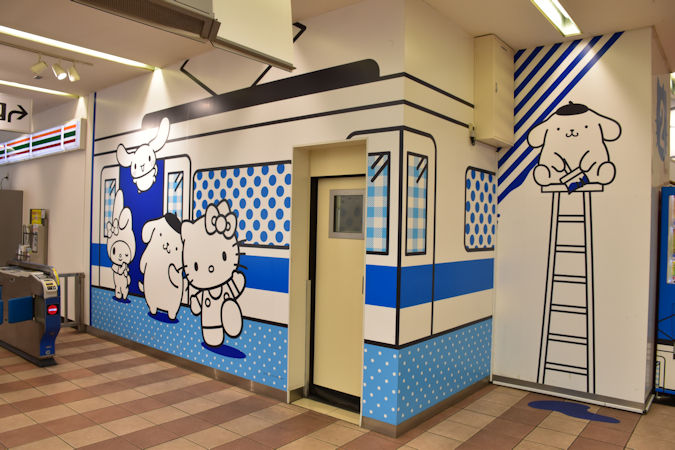 本日は友人のMr.Tとお出かけ。まずは小田急の新百合ヶ丘駅で小田急多摩線に乗り換え、サンリオのキャラクターに侵略された小田急の多摩センター駅で下車。ホームから改札へ向かう階段もこの通り。