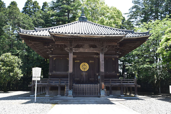 一切経堂。1722(享保7)年築で成田市指定文化財。輪蔵に、一切経(約2,000冊)が納められています。また、入口の扁額は寛政の改革でお馴染み、松平定信の筆によるもの。