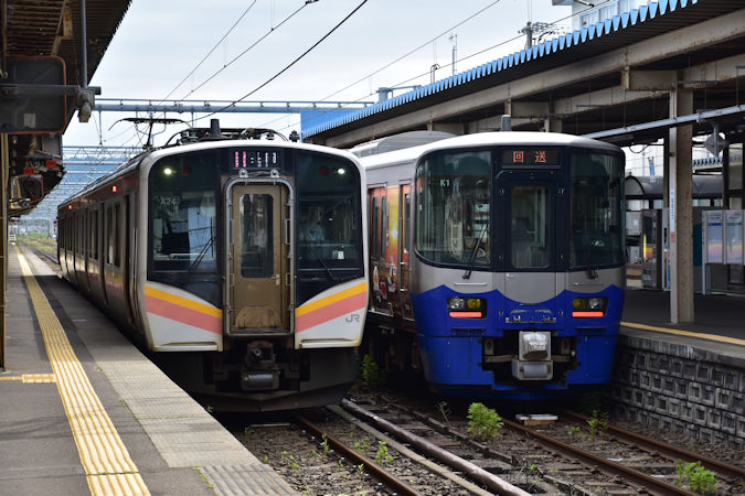 そして、直江津駅に到着。かつての特急「はくたか」「北越」などはいなくなりましたが、北越急行を含め様々な路線が集結する交通の要衝です。