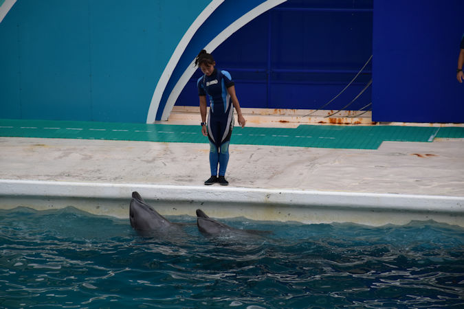 お客さんもずぶ濡れ前提の、大迫力のパフォーマンス。獰猛なイメージがありましたが、飼育下ではこんなに人懐っこいし、様々な行動が出来るんですね。