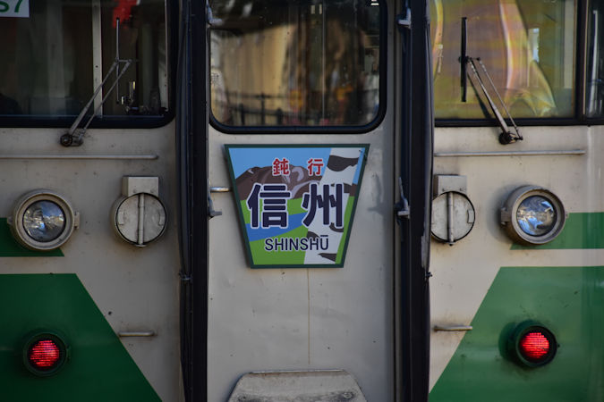 オリジナルのヘッドマークを付けていました。「鈍行 信州」「鈍行 妙高」とのこと。