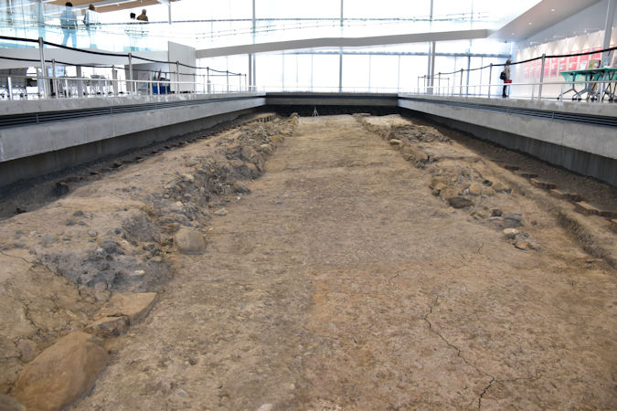 続いて、 2023(令和5)年1月13日に開館した静岡市歴史博物館へ。時間の都合で1階しか見ませんでしたが、「戦国時代末期の道と石垣」の遺構を見られるのが特徴。