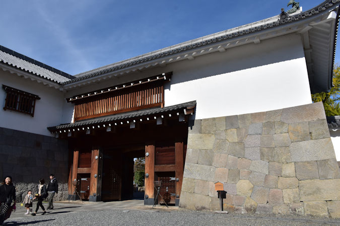 東御門。1996(平成8)年復元。高麗門と櫓門から成っています。