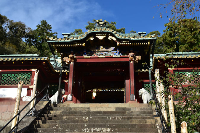 さらにロープウェーで久能山東照宮へ。楼門は1618(元和4)年築で、国指定重要文化財。後水尾天皇の書いた「東照大権現」の額が掲げてあるので、勅額御門とも呼ばれています。