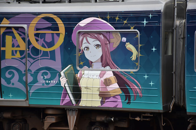 ここでのお目当ては、7000系第2編成による「YOHANE TRAIN」。6月23日から運行されているもので、「ラブライブ!サンシャイン!!」公式スピンオフ作品「幻日のヨハネ -SUNSHINE in the MIRROR-」のフルラッピング車です。