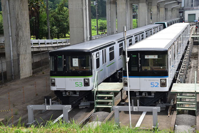 続いてニューシャトルに乗車して丸山車両基地へ。1050系第52編成、第53編成の並びを撮影しておきました。