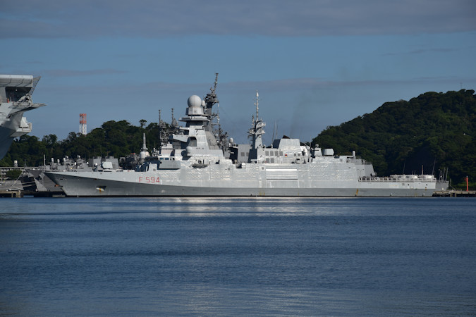 本日は朝7時から横須賀へ。イタリア海軍の空母「カブール」と随伴のフリゲート艦「F594 アルピーノ」が入港したというので撮影してみました。