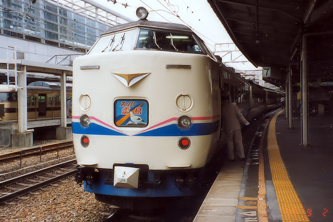 クハ489−1は、特急「スーパー雷鳥」トレインマークを掲出していました。ボンネット車両用の「スーパー雷鳥」は初めて見ました。