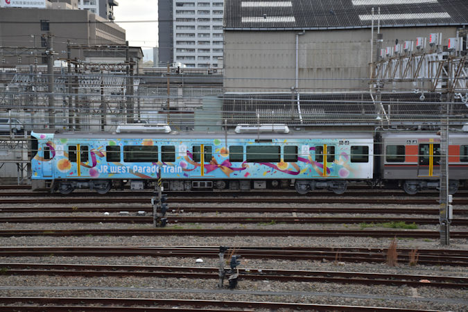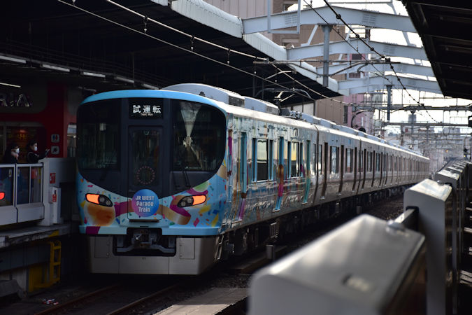 大阪環状線に戻ると、 323系「JR WEST Parade Train」の試運転に遭遇。