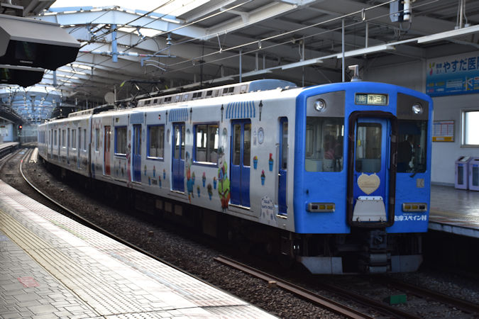 新今宮駅に移動し、泉北高速鉄道のキャラクター「せんぼくん」、鉄道むすめ「和泉こうみ」ラッピング車両(5000系)をゲット。