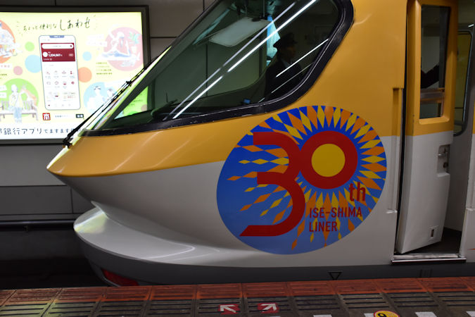 大阪難波駅では近鉄23000系「伊勢志摩ライナー30周年記念ロゴマーク」を撮影。