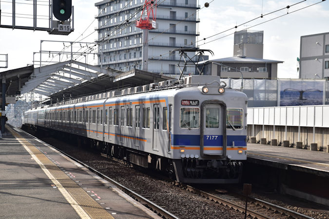 南海2000系。こちらは当時、2000系として最後まで南海本線で運用された2003編成で、大きく2扉車と表記されています。約1週間後の12月21日運用改正で南海本線の運用を終了しています。
