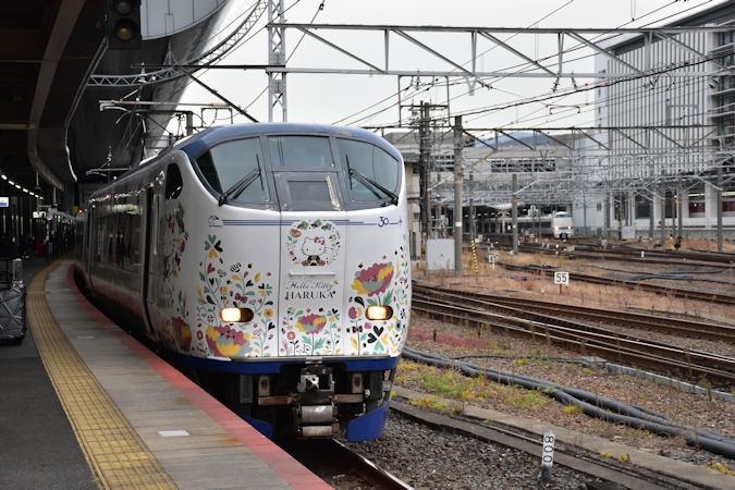 最後に京都駅で少しだけ撮影。281系ハローキティはるかの特急はるか30周年装飾付き。
